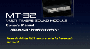 The Roland MT-32 manual - This is a compact multitimbral MIDI sound module that adds richer synthesized instrument and rhythm playback, along with editable sounds and MIDI control features, for use with keyboards, sequencers, and computers. |